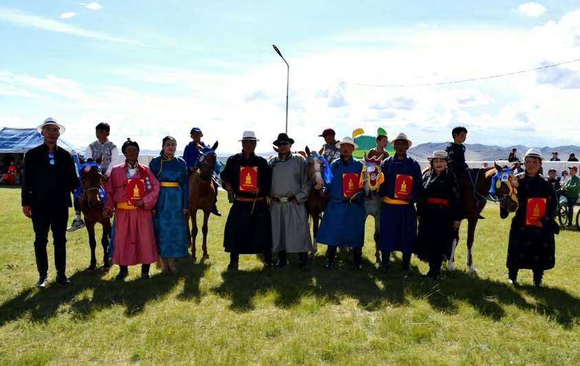 Хурдан хязаалангийн уралдаанд түрүүлж, айрагдсан морьдын цуваа